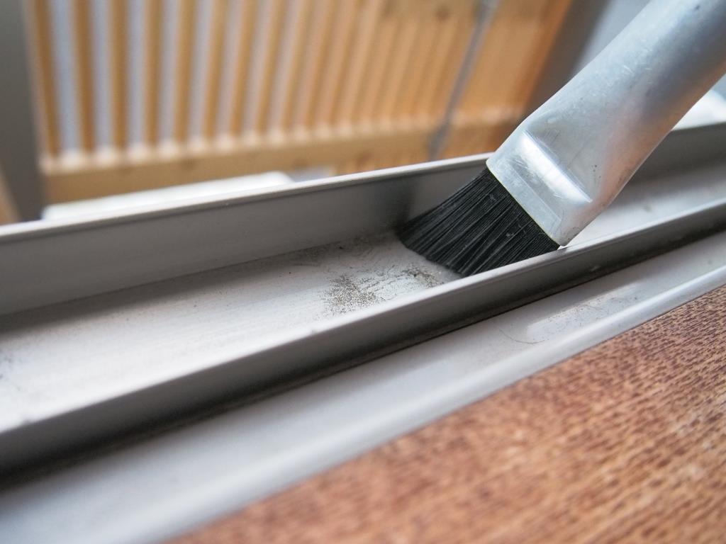 気になる人は、このあと絞ったぞうきんで水拭きすればOK。掃除機がハンディしかなかったりするとサッシのホコリを吸い込まない場合があるので、そのときはぞうきんで汚れを拭き取る必要があります。